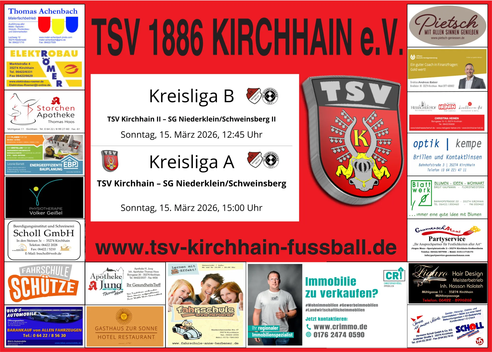 Am Sonntag, 15. März 2026, empfangen beide Mannchaften die SG Niederklein / Schweinsberg.